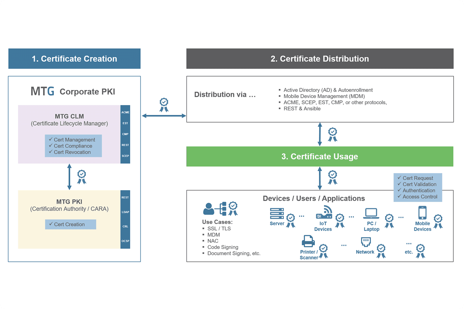 - First cost-free managed PKI from Germany: Use the FREE Plan as a full version. Import an unlimited number of your own certificates with Certificate Discovery, HSM support, and up to 50 active certificates from the MTG PKI.